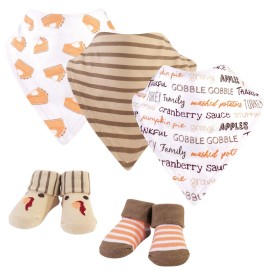 Hudson Baby Unisex Baby Cotton Bib and Sock Set, Pumpkin Pie, One Size