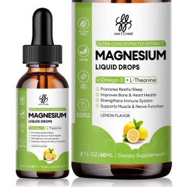 Magnesium Glycinate Liquid, Magnesium Complex Supplement with Omega3, L-Theanine and Vitamin for Calm, Sleep Support, Muscle Relief, Non GMO, Blueberry Flavor, 2 Fl Oz