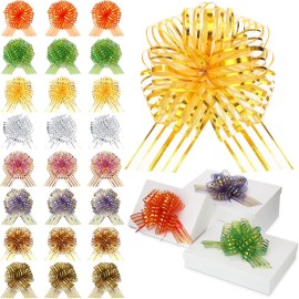 Features: Beautiful ornament: These pull bows are designed with stripes, which look shiny under light, its final shape is like a flower, pretty and ornamental, can make your gift boxes a good decorative effect. Wide applications: Suitable for gift box packaging, flower packaging and decoration, wedding table ornament, Christmas decorations, you c..