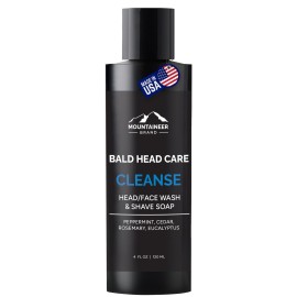 Mountaineer Brand Bald Head Care for Men is the perfect daily head and face wash that gently removes dirt, oil, and bacteria from deep within the pores. The all natural moisturizing extracts (with Peppermint, Cedar, Rosemary, and Eucalyptus notes) leaves you feeling hydrated and refreshed. Save shower space and use it as a shave soap...