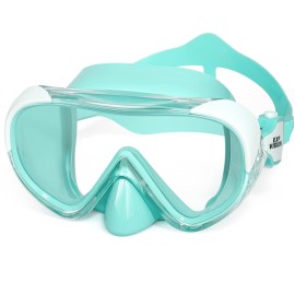 Kids Swim Mask 180 Snorkel Diving Mask, Anti-Fog Child Swim Goggles with Nose Cover No-Leak Swimming Goggles Anti-Shattered Lens for Youth 4-15 (Mint Green)