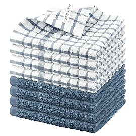 Nialnant Cotton Terry Kitchen Towels,12 x 12 Inches Dish Cloths Set of 8,Super Soft and Absorbent Dish Rags for Cleaning - Navy Blue Plaid