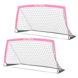 RUNBOW 6x4 ft Portable Kids Soccer Goal for Backyard Practice Soccer Net with Carry Bag (6x4 FT, 2 Pack, Pink)