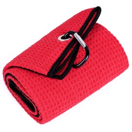 Mile High Life Tri-fold Golf Towel | Premium Microfiber Fabric | Waffle Pattern | with Heavy Duty Carabiner Clip | Golf Towel for Men and Women (GreenGolf Towel )..
