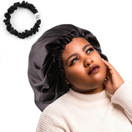ELIHAIR Silky Night Sleeping Cap Satin Bonnet for Curly Hair Adjustable Hair Bonnet Reversible Double Layer X-Large Jet Black