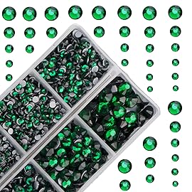 Product description Sparkling and Shining Flatback Rhinestones: Those flatback rhinestones are made by high quality glasses, good cutting multifaceted by machine, great shines under sunshine and spotlights. 10000 Pieces Emerald color rhinestones in variety sizes: Wide range of applications: Suitable for: nail art eye makeup body art phone bags gree..