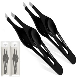 Professional Eyebrow Tweezers Slanted Tip Stainless Steel 2,3xPcs Set, Non-Slip Grip Slant Tip Tweezers for Facial Hair, Plucking Removing Ingrown Hairs, Tweezer for Women Men (Black&Black)