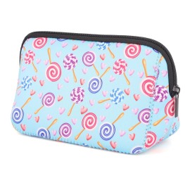 AJLTPA Cosmetic Bag Waterproof Neoprene Zipper Pouch Travel Portable Toiletry Makeup Bags Organizer Case for Women and Girls, Lollipop