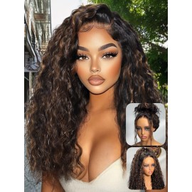 UNICE Deep Water Wave 7x5 Bye Bye Knots Lace Front Wigs Human Hair Golden Brown Highlight Glueless Human Hair Wig Pre Plucked Pre Cut Natural Hairline 150% Density 18 inch