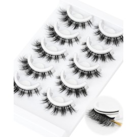 Waterproof Self Adhesive Eyelashes, 5 Pairs Natural Look Stick on False Eyelashes, Cat Eye Style 6-12mm Pre Glued Lashes, No Glue Needed, Wispy Glueless Lashes Reusable by Obeyalash (6D07)..