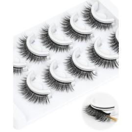 Waterproof Self Adhesive Eyelashes, 5 Pairs Natural Look Stick on False Eyelashes, Cat Eye Style 6-12mm Pre Glued Lashes, No Glue Needed, Wispy Glueless Lashes Reusable by Obeyalash (6D07)
