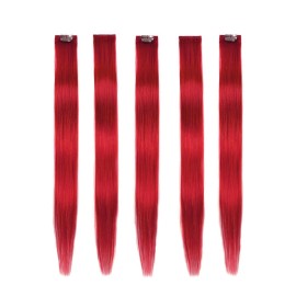 Winsky Red Hair Extensions Clip in Human Hair - 100% Straight Party Highlights Clip on Colored Hair Extensions 5 Pieces/Set (18inch,Red)
