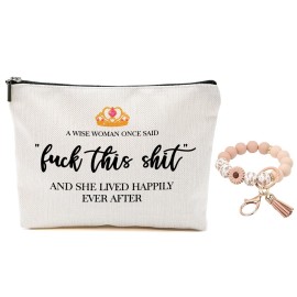 Funny Inspirational Makeup Bag for Women Lady Bestie, Large Capacity Makeup Pouch Travel Organizer Toiletry Cosmetic Bag, Silicone Beaded Bracelet Keychain with Tassel, Gifts for Women, Beige
