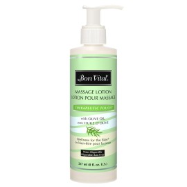 Bon Vital\' Therapeutic Touch Massage Lotion, 8 Oz, Olive Oil-Infused Moisturizing Lotion for Massage Therapy, Non-Greasy Skin Therapy for Clinics & Spas, Professional Grade, Unscented