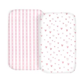 100% Organic Cotton 2 Pk Bedside Sleeper Bassinet Fitted Mattress Sheets for Mika Micky, Baby Delight, Ronbei, Chicco, KoolerThings, Cloud Baby, AMKE, Angelbliss, Maxi-COSI, Arm\'s Reach, Plus. Girl