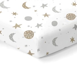 100% Organic Cotton Fitted Sheets for Standard Crib and Toddler Mattresses/Pads 28 x 52 and up to 6 Thick. Boys and Girls. Fits, Dream On Me, Lullaby, Safety 1st, Newton, and Other Brands. Space