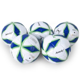 Aoneky Size 4 5-Pack Soccer Ball - Eco-Friendly 2.5mm PVC Leather, Durable Machine-Stitched Design, Ball Pump Included