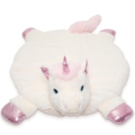 Bearington Baby Dreamer Baby Play Mat - 30 x 30 Inch White and Pink Unicorn Plush Stuffed Animal Blanket - Floor Mat Unicorn Plush Blanket