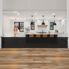 KISKIZ 185 Extra Wide Retractable Mesh Gates for Kids or Pets The KISKIZ extra long retractable baby gate functions as a child safety gate, pet barrier, semi-enclosed play area, fireplace guard, and room divider. It offers flexible solutions for homes with open floor plans or wide spaces, allowing you to effectively manage and divide areas for bot..