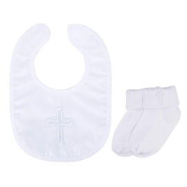 Infant Baby Boys\' Girls\' Christening Baptism Embroidered Cross Bib and Socks for Outfits