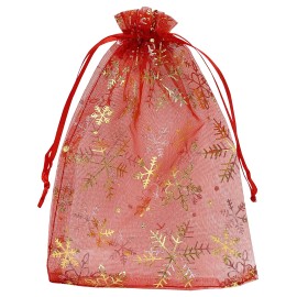 Jexila 100PCS Christmas Organza Bag 5\'\'X7\'\' Red Snowflake Mesh Drawstring Jewelry Gift Bags for Xmas Wedding Party Favor Treat Bags