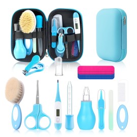 Baby Healthcare and Grooming Kit, 14 in 1 Baby Safety Set Newborn Nursery Health Care Set with Hair Brush Scale Nail Clippers for Baby Girls Boys (Blue 14 in 1)