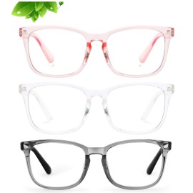KUGUAOK 3 Pack Kids Blue Light Blocking Glasses, Boys Girls Computer Gaming TV Glasses, Lightweight Eyeglasses Frame (Age 4 to 12)