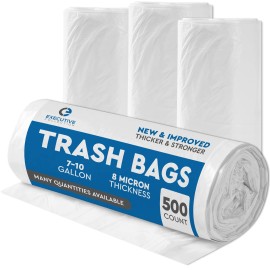 Clear 7-10 Gallon Trash Bags, 500 Bulk Pack - Medium Size Garbage Bin Liners for Office, Bedroom and Kitchen Wastebasket Cans - by Executive Collection
