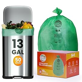 Trash bags 13+ gallon tall kitchen,100count,Extra Thick1.11 Mills,Compostable bags,Kitchen Compost Trash Bin Compatible,Certified by BPI and OK Compost