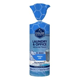 Color Scents 8-gallon medium trash bags are perfectly sized to handle life\'s daily messes. For use in the laundry room, office or any room around the house where a medium bin is used. Our Fresh Air scent is delicate and delivers subtle bursts of fragrance while combating unwanted odors. Add in a pop of color with our home decor complementing color..