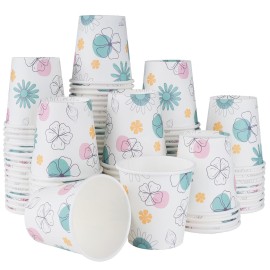 Lamosi 3 oz Bathroom Paper Cups 300 Pack, Floral Disposable Small Mouthwash Drinking Cup for Water, Coffee, Sample, Tasting and Dessert
