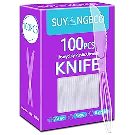 ![[100 Count] Clear Plastic Knives Heavy Duty, Disposable Steak Knives Plastic Silverware Bulk Washable Cutlery Set Serving Utensils Tableware for Party Supplies,Daily Use,Picnic,Camping,Wedding,BBQ](https://m.media-amazon.com/images/I/61o9IFs1kEL._SS47_SS47_.jpg)