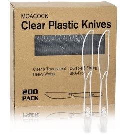 MOACOCK 200 Count Clear Plastic Knives, Heavy Weight Disposable Spoons Cutlery Plastic Utensils, Clear PlasticSilverware Bulk