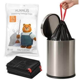 XUXRUS Small 4 Gallon Black Trash Bags with Drawstring, 60 Count Premium Black Garbage Bags, Tear-Resistant, Easy Tear-Off, Heavy Duty Trash Can Liners for Bathroom, Kitchen, Office