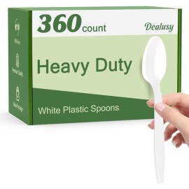 Dealusy 360 Count White Plastic Spoons Disposable, BPA-Free, Heat Resistant, Solid and Durable Disposable Spoons Heavy Duty Bulk, Premium Spoons plastic disposable for Party Supply..