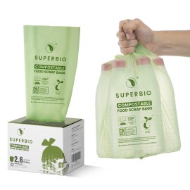 SUPERBIO 2.6 Gallon Flat Top Compostable Food Waste Bags, 100 Count, 2 Pack,9.84L, Food Scrap Bags, BPI Certified and OK compost INDUSTRIAL