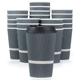 Glowcoast To Go Coffee Cups With Lids - 22 oz Disposable Coffee Cup With Lid. Large Togo Travel Paper Ripple Hot Cups Insulated For Hot, Cold Beverage Drinks, No Sleeves Needed (50, Dusk Grey)