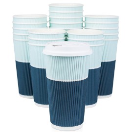 Glowcoast To Go Coffee Cups With Lids - 22 oz Disposable Coffee Cup With Lid. Large Togo Travel Paper Ripple Hot Cups Insulated For Hot, Cold Beverage Drinks, No Sleeves Needed (50, Ocean Blue)