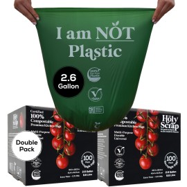 HS-2.6G-200 HOLY SCRAP! 100% Compostable Trash Bags, 2.6 Gallon, 9.84 Litre, 200 Count, Extra Thick 0.71 Mils, Food Scrap Small Kitchen Trash Bags, US BPI and Europe OK Compost Home Certified...