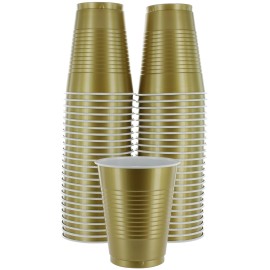 Amcrate Disposable Cups, Gold 18-Ounce Plastic Party Cups, Strong and Sturdy for Wedding, Christmas, Halloween, 50 Pack