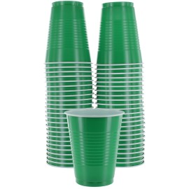 Amcrate Disposable Cups, Green 18-Ounce Plastic Party Cups, Strong and Sturdy for Wedding, Christmas, Halloween, 50 Pack