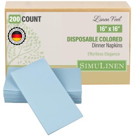 SimuLinen Light Blue Linen Feel Disposable Dinner Napkins - Cloth-Like Kosher Napkins for Celebrations, Weddings, and Showers, 16x16, Box of 300