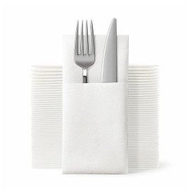 JEBBLAS Disposable Cloth Like Napkins, Built-in Flatware Pocket, Wedding Party Linen Feel White Napkin, Prefolded for Silverware,50 Count