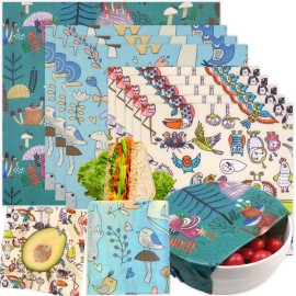 Reusable Beeswax Wrap - 9 Pack Beeswax Wraps for Food, Eco-Friendly Beeswax Food Wraps, Bread Sandwich Wrapper - Organic, Sustainable, Biodegradable, Zero Waste, Plastic Free Wrap, 5S, 3M, 1XL..