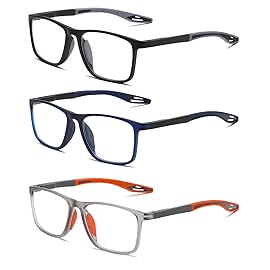 Hubeye TR90 Sports Reading Glasses for Men and Women Ultralight Flexible Anti-Blue Light ReadersBlack+Grey+Orange+2.0