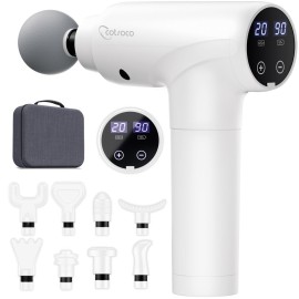 cotsoco Massage Gun Deep Tissue, Muscle Massage Gun with 9 Attachment Heads 20 Speeds & Silent Brushless Motor for Pain Relief, Handheld Percussion Back Massager Gun for Athletes(White)