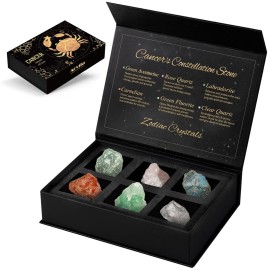 Cancer Crystals Gift Set, Zodiac Signs Healing Crystals Birthstones with Horoscope Box Set Cancer Astrology Crystals Healing Stones Gifts