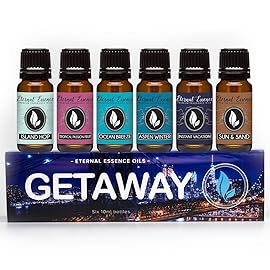 Get Away Gift Set of 6 Premium Grade Fragrance Oils - Island Hop, Ocean Breeze, Tropical Passion Fruit, Aspen Winter, Instant Vacation, Sun & Sand - 10Ml - Scented Oils