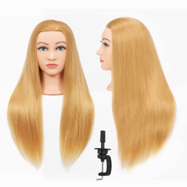 Hairginkgo Synthetic Fiber Training Head 26-28 Braiding Head Hair Styling Manikin Cosmetology Doll Hairdresser Training Model for Cutting Braiding Practice with Clamp