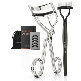 Eyelash Curler with Comb, Professional Volumizing Lash Lift Kit Lash Curler with Refill Pads for Home & Travel Uses, Silver